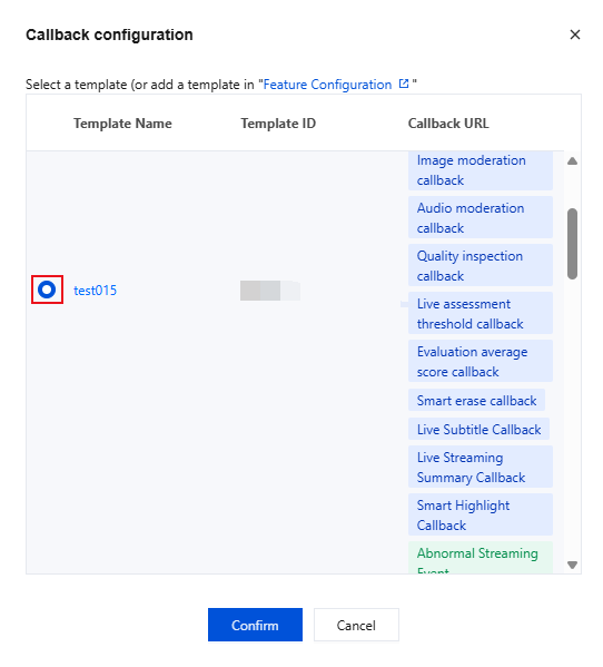 When a CSS event is triggered after the callback feature is enabled, you can receive the event information through the event message notification. The callback templates are managed at the domain name level in the console, and rules created by APIs cannot be canceled for the time being. If you bound a template to a specified stream through the callback APIs and want to unbind it, you need to call the DeleteLiveCallbackTemplate API. One domain name can be bound to only one callback template. After binding, all streams under it will be called back according to this template.