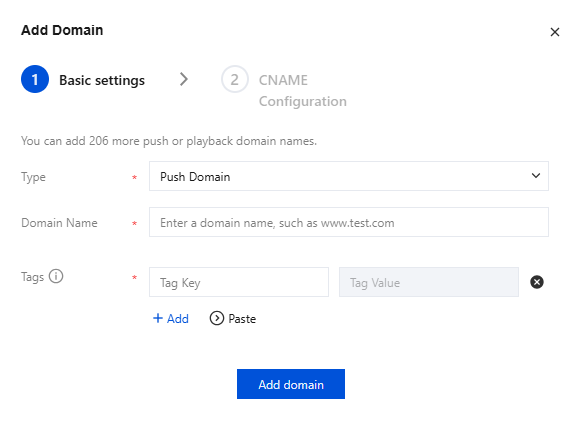 3. Select the Push Domain Name and Playback Domain Name that you have added to Domain Management.