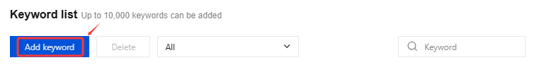 You can select a category for the keywords you add. Separate multiple keywords by pressing Enter. You can enter at most 2,000 keywords at a time.