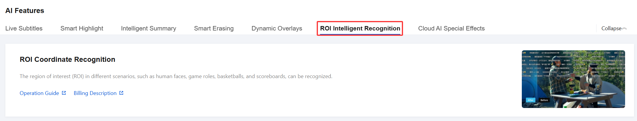 The ROI recognition feature is a paid value-added service. Using this feature incurs live transcoding fees and Media Processing Service (MPS) intelligent content recognition fees. For specific billing rules, refer to the billing documentation.