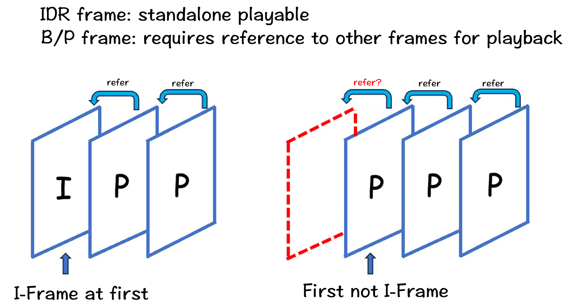 VideoFirstFrameNotIdr | The video cannot be played. | The first frame is not an IDR frame. | ![]() | This is usually caused by abnormal encoding or data transmission. It is recommended to first check whether the file can be played normally after encoding and before streaming, and then check whether the data transmitted by streaming is complete. |