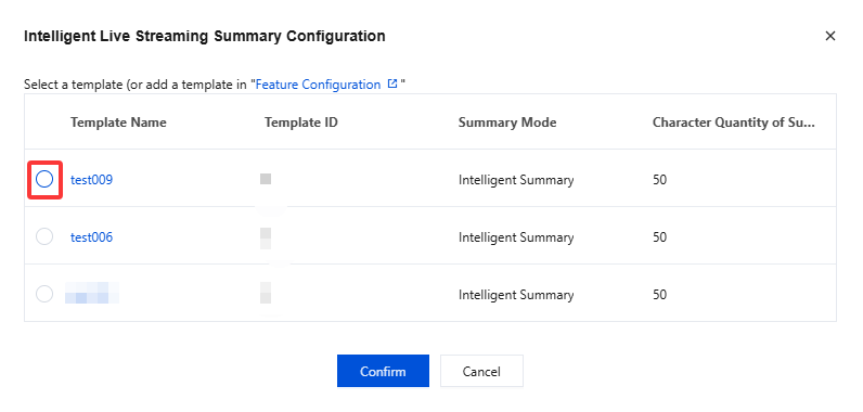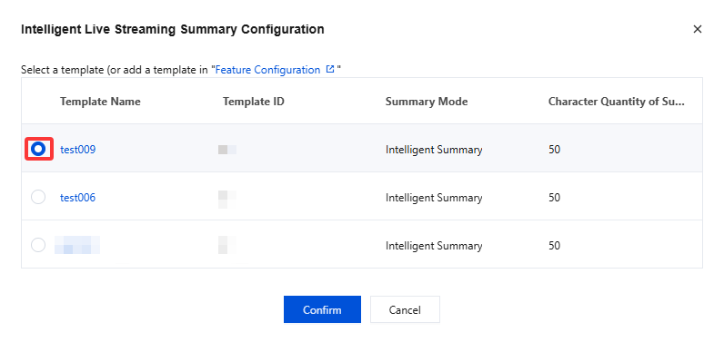 3. Choose a intelligent summary configuration template according to your business requirements and click Confirm to complete the configuration.