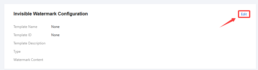 1. Go to Domain Management and click the push domain name to be configured or Manage to enter the domain name details page. 2. Select Template Configuration and click Edit in the Invisible Watermark Configuration section.