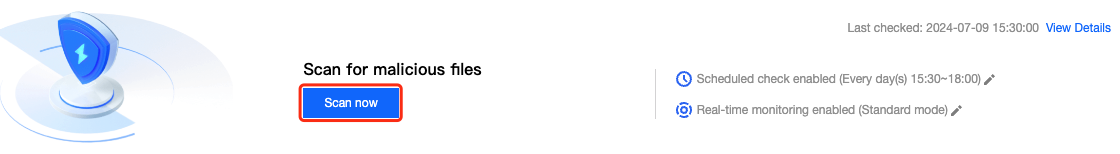 1. Log in to the CWPP console. In the left sidebar, choose Intrusion Detection > File Scanning. 2. On the malicious file scan page, click Scan now to start setting up manual detection mode.