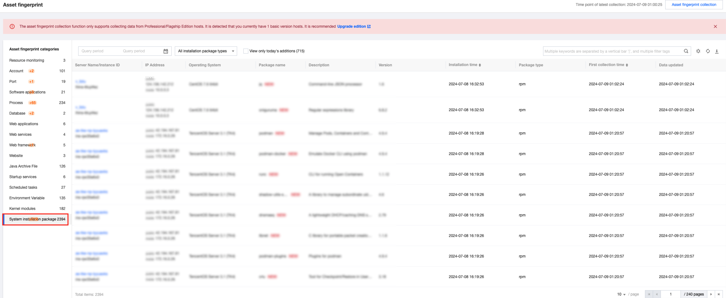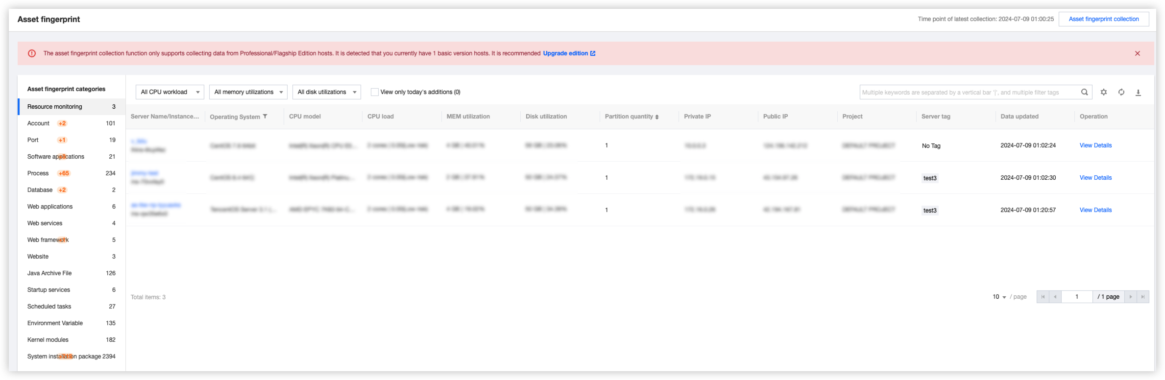 Only hosts with the paid protection edition can collect asset fingerprint data. Basic edition hosts must first upgrade the edition. The following lists the asset fingerprint items collected in different CWPP editions.