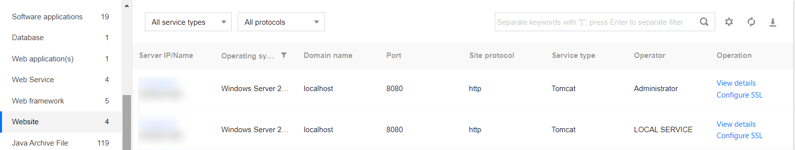 Collect the data of all websites deployed on the server.