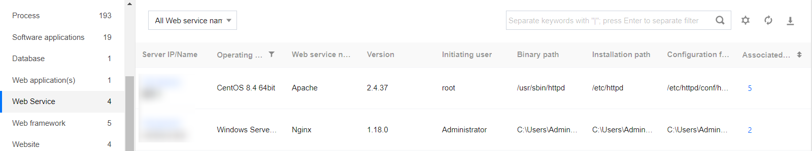 | 16 types of assets: Resource Monitoring, Accounts, Ports, Processes, Software Applications, Databases, Web Applications, Web Services, Web Frameworks, Websites, JAR Archive Files, Startup Services, Scheduled Tasks, Environment Variables, Kernel Modules and system installation package |