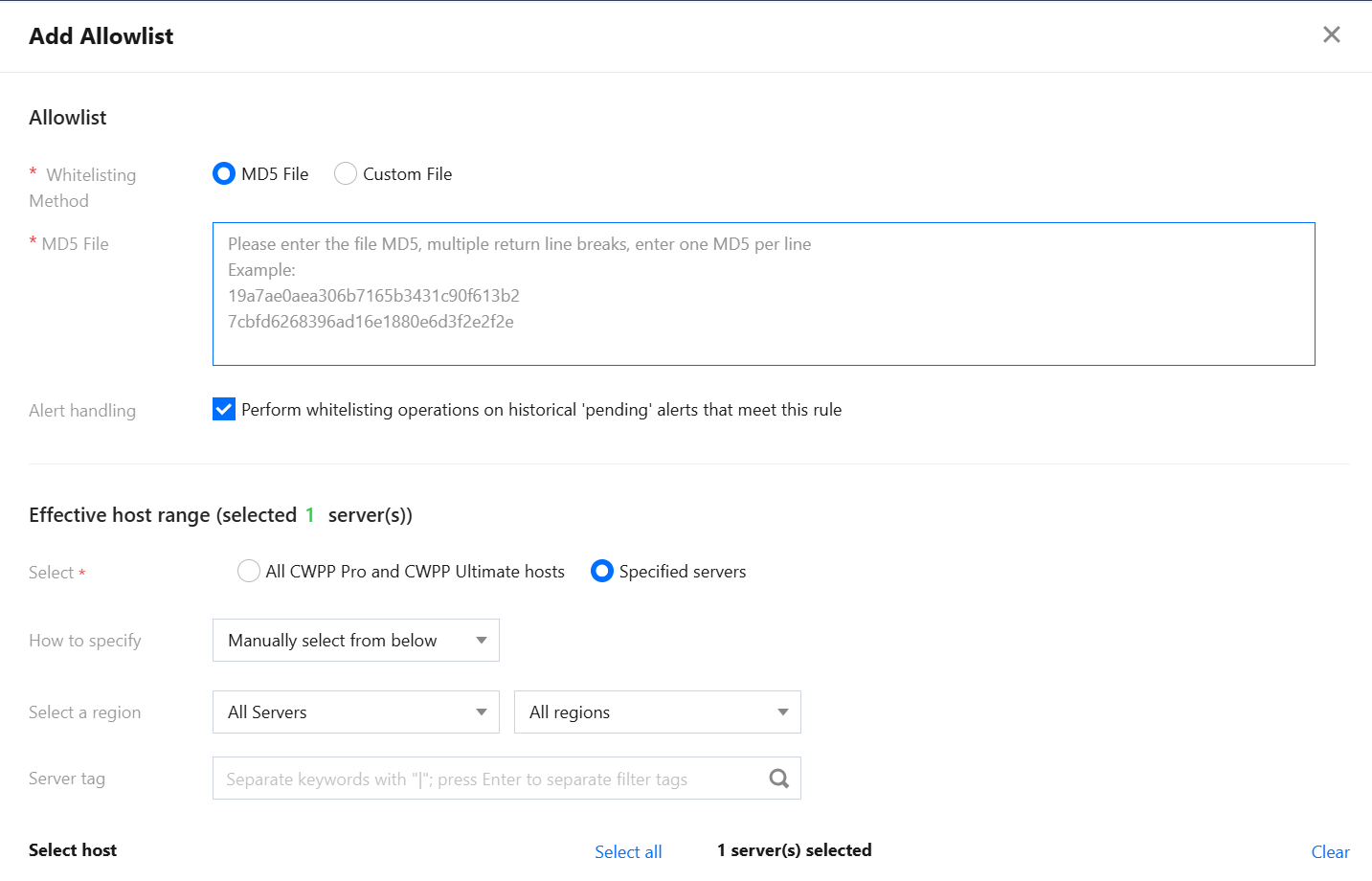 When malicious files are detected on the server under a user's Tencent Cloud account, if the file is not hit in the file allowlist, real-time alerts will be triggered by host security.