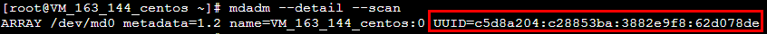 c5d8a204:c28853ba:3882e9f8:62d078de为例)。如下图所示:mdadm --detail --scan