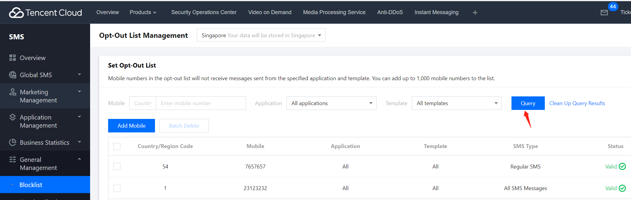 Before using the Do Not Disturb List feature, you need to apply for an SMS signature and confirm that it has passed the review.