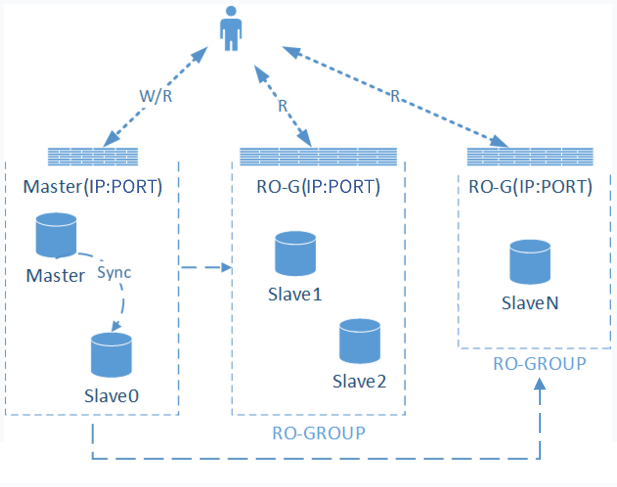 RO group: It consists of one or more load balancing-enabled read-only instances. If there are multiple read-only instances in one RO group, read requests can be evenly distributed among the instances. RO groups provide IPs and ports for access to databases.