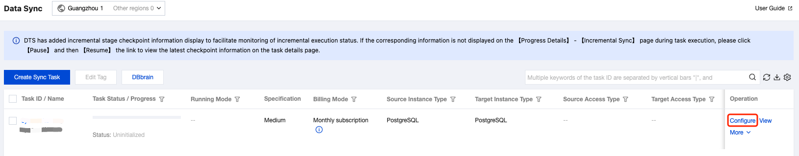 Source instance type | Select PostgreSQL. It cannot be modified after purchase. |