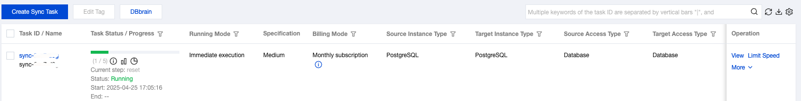 | Existing homonymous table | Pre-validation and error reporting: If a table with the same name exists, an error will be reported and the process will no longer continue. Ignore and continue execution: Add full data and incremental data directly to the table of the target instance. |