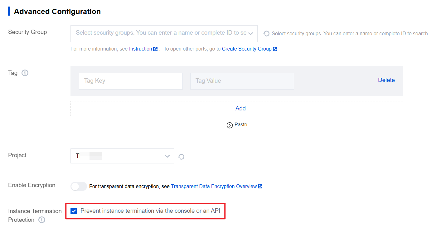By enabling termination protection, you can safeguard instances containing your business data from accidental termination. This document describes how to enable and disable instance termination protection via the console.