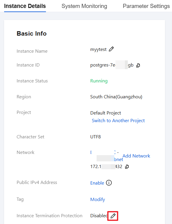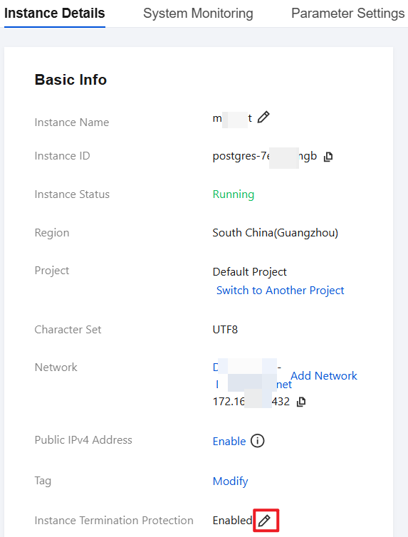 Tab View: choose Instance Details > Basic Info > Instance Termination Protection. As shown below: