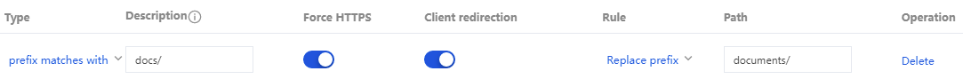 If you choose prefix as the type, the rule supports selecting "replace path" or "replace prefix".