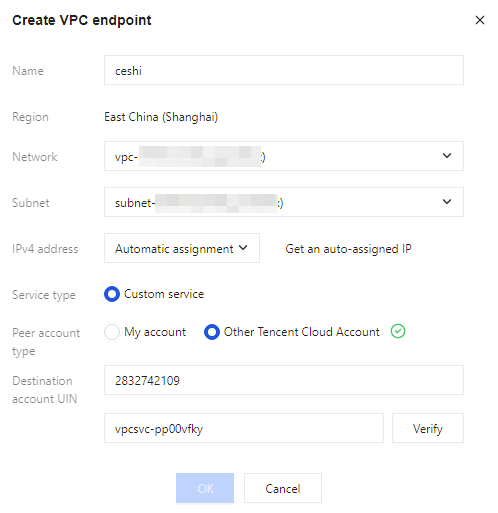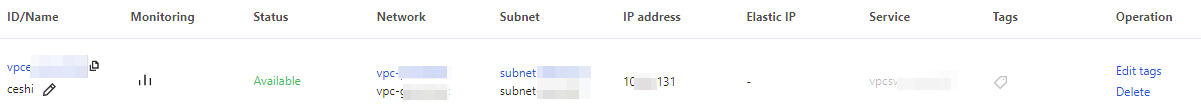 Using Endpoint Service will incur additional fees charged by the VPC product. For detailed billing descriptions and examples, see Billing Overview. Operation Steps