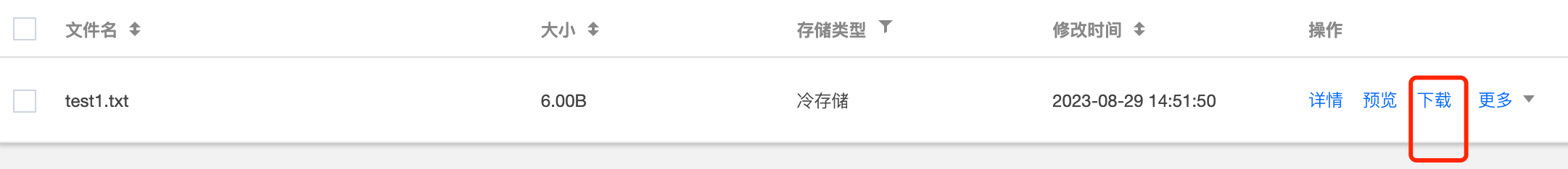 2.2 Cold storage objects do not need to wait for retrieval and can be directly downloaded by clicking Download.