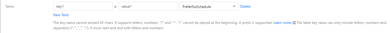 Assume that Taints is set to key1=value1:PreferNoSchedule, the configuration in the TKE console is as below: Retry policy: Select either of the following policies as needed.