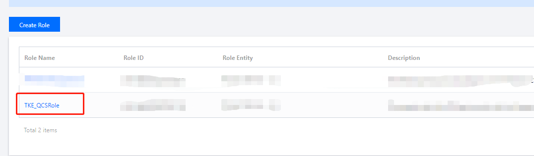 TKE_QCSRole by default. After TKE is activated and TKE_QCSRole is granted, you have the permissions of various Ops-related features, including log features.Permission Name | Permission Description |