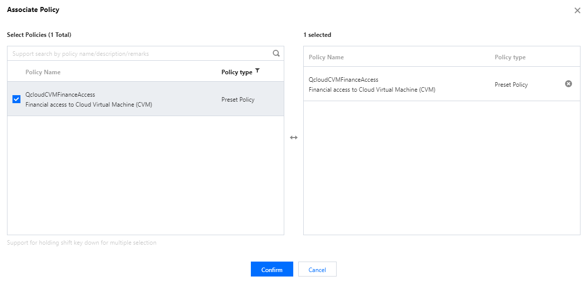 QcloudCVMFinanceAccess and select it.