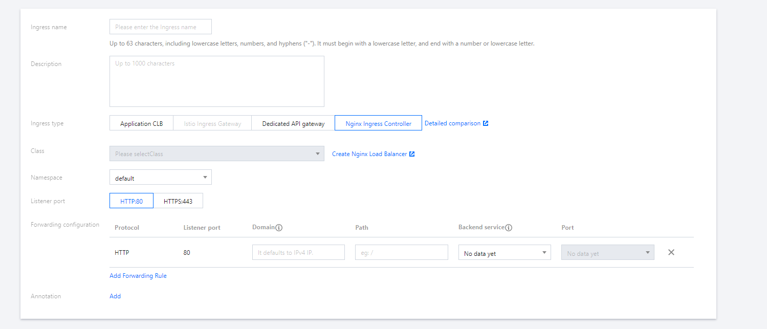 5. Set the Ingress parameters based on actual needs, as shown in the figure below: