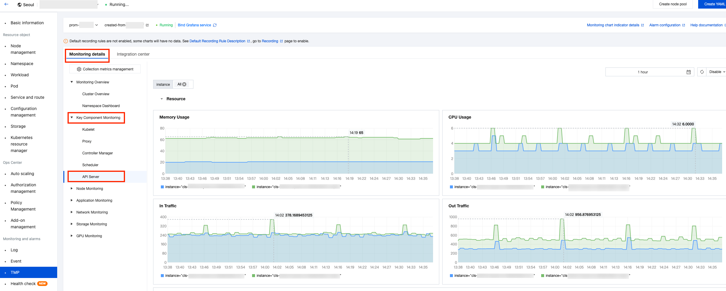 The monitoring component clustermonitor has been upgraded to 1.3.2 or a later version. TMP has been enabled and associated with instances.