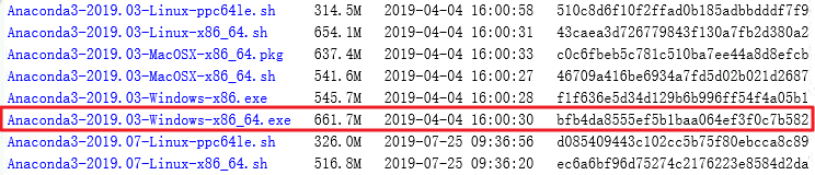 It is recommended to install PyTorch and TensorFlow in a virtual environment created with Anaconda. With Anaconda, you can easily obtain and manage packages, and manage environments in a unified way. Anaconda includes more than 180 scientific packages and dependencies (including conda and Python). It is easy to install, supports high-performance Python and R usage, and provides free community support. 2. Download the required version on the page. This document uses Anaconda3-2019.03-Windows-x86_64 as an example, as shown below: