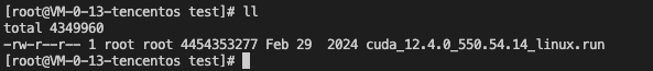 6. Run the following commands sequentially to grant execute permissions to the installation package. Operations should be performed under the root user. For example, grant execute permissions to the file cuda_12.4.0_550.54.14_linux.run.