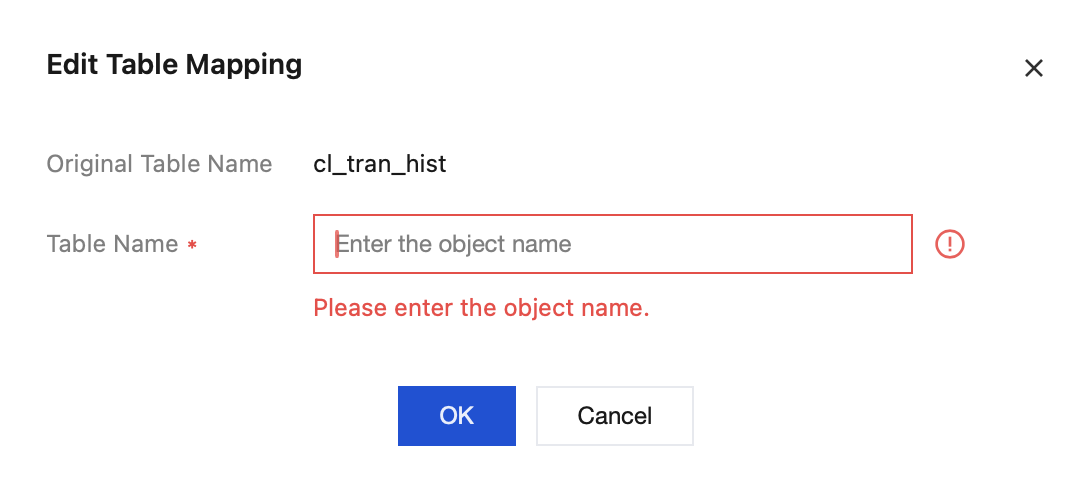Table name mapping: In the pop-up window, set the name of the table in the target instance.