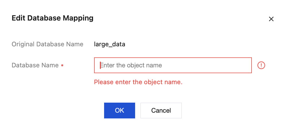 Database name mapping: In the pop-up window, set the name of the database in the target instance.