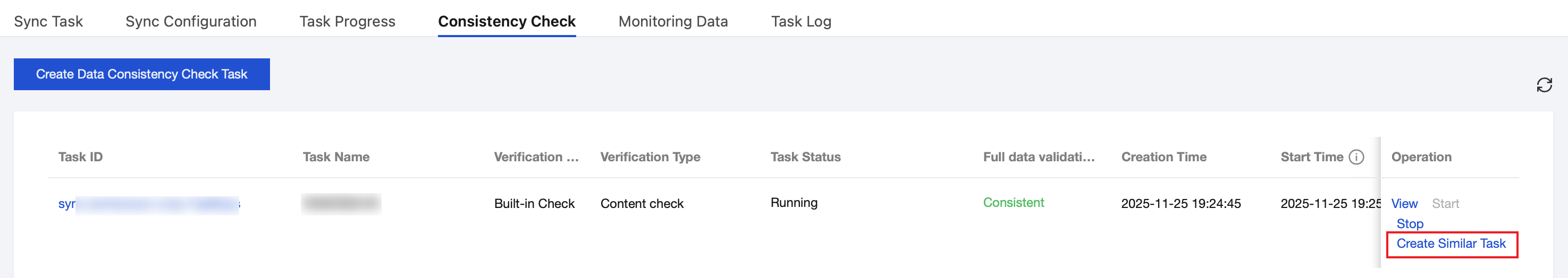 Task Name | Name of the created consistency check task. |