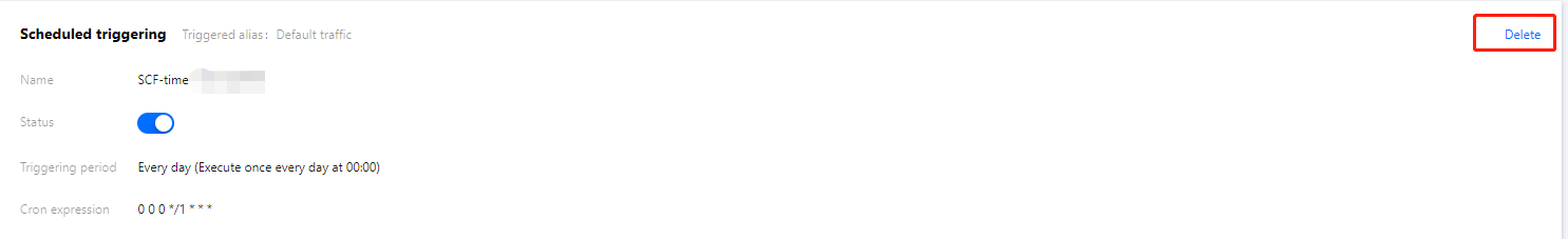 4. Select Trigger management on the left to enter the trigger browsing and operation page. Click Delete in the top-right corner of the target trigger as shown below: