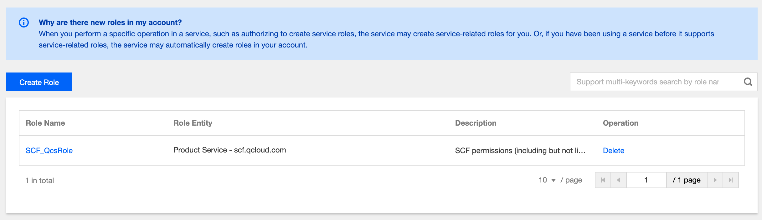 3. After the authorization is confirmed, the role SCF_QcsRole will be automatically created for you as shown below: