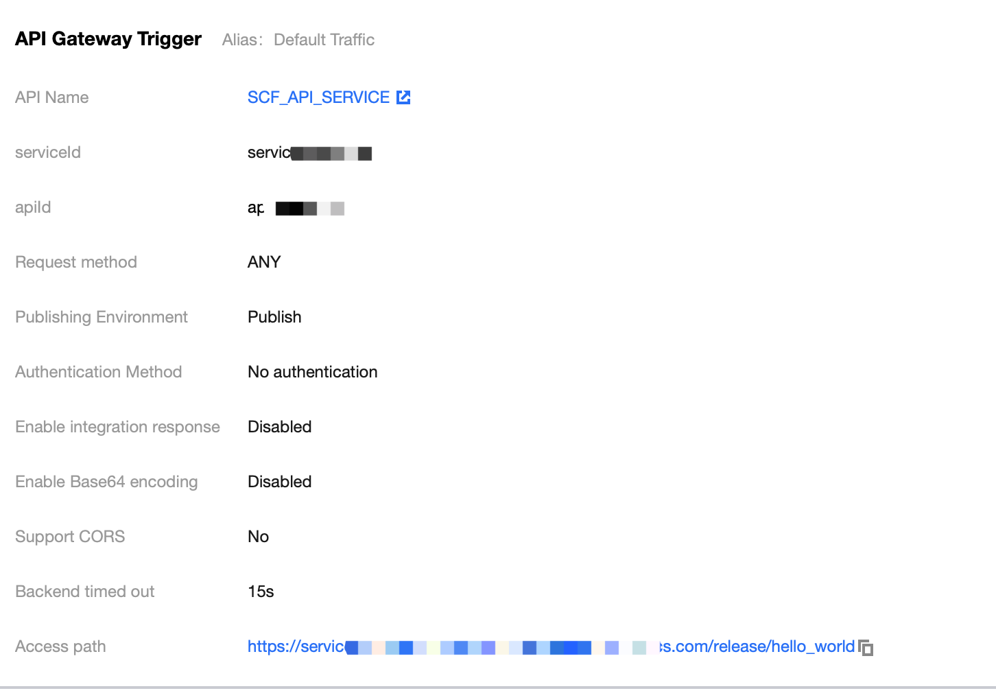 1. After a trigger is successfully created, an access path will be generated on the Trigger management page of the function as shown below:
