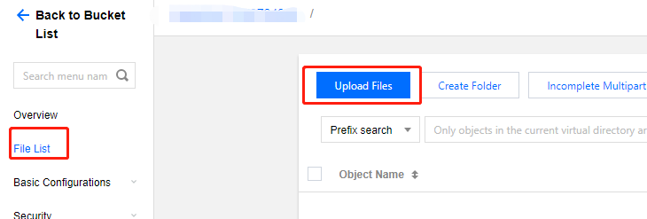 1. On the bucket management page, select File List on the left.