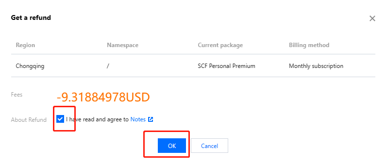 1. In Basic configurations, select Operations - Get a refund. 2. In the pop-up, check the information, read and agree to the reminder, and click OK.