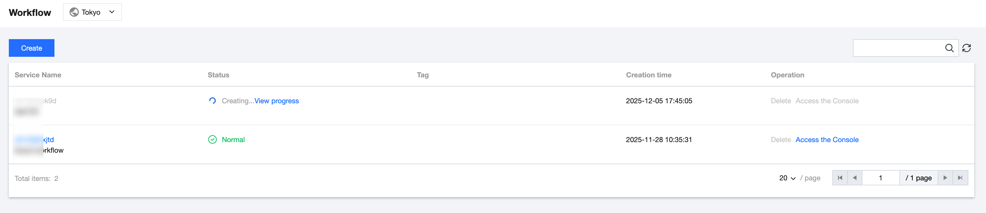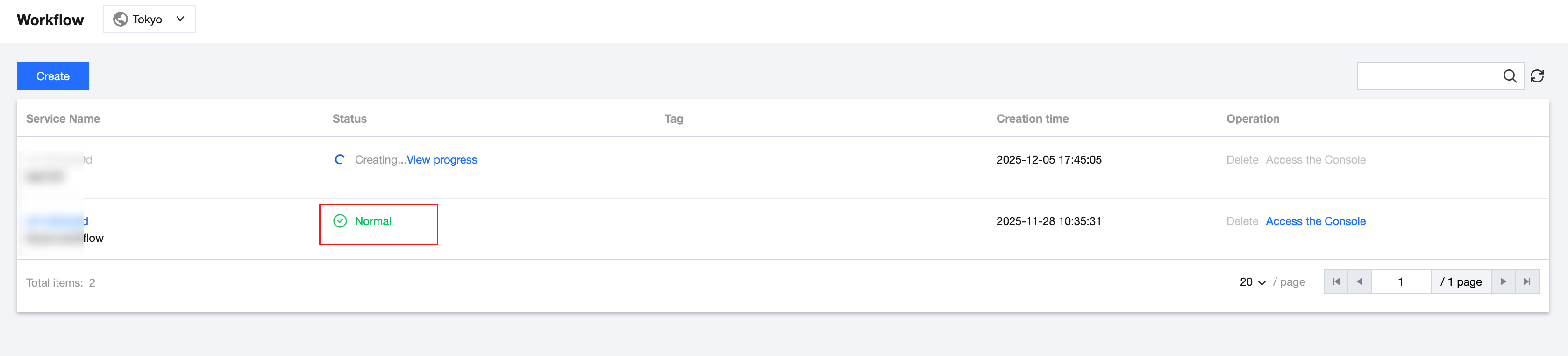 6. For workflow services being created, click View Progress to view the latest creation progress.