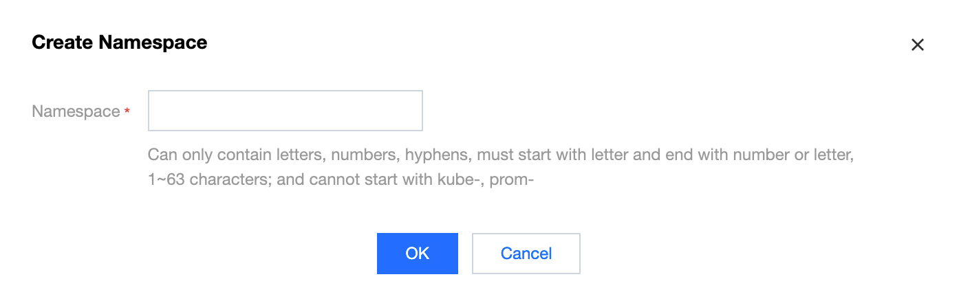 Create namespace: Click Add, enter the namespace name, and click OK.