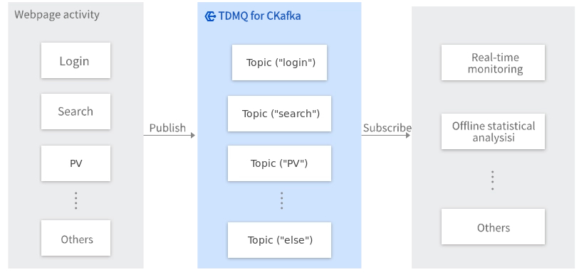Since each user's PVs generate a large amount of activity information, website activity tracking requires high throughput. CKafka can meet the requirements of high throughput and offline processing.