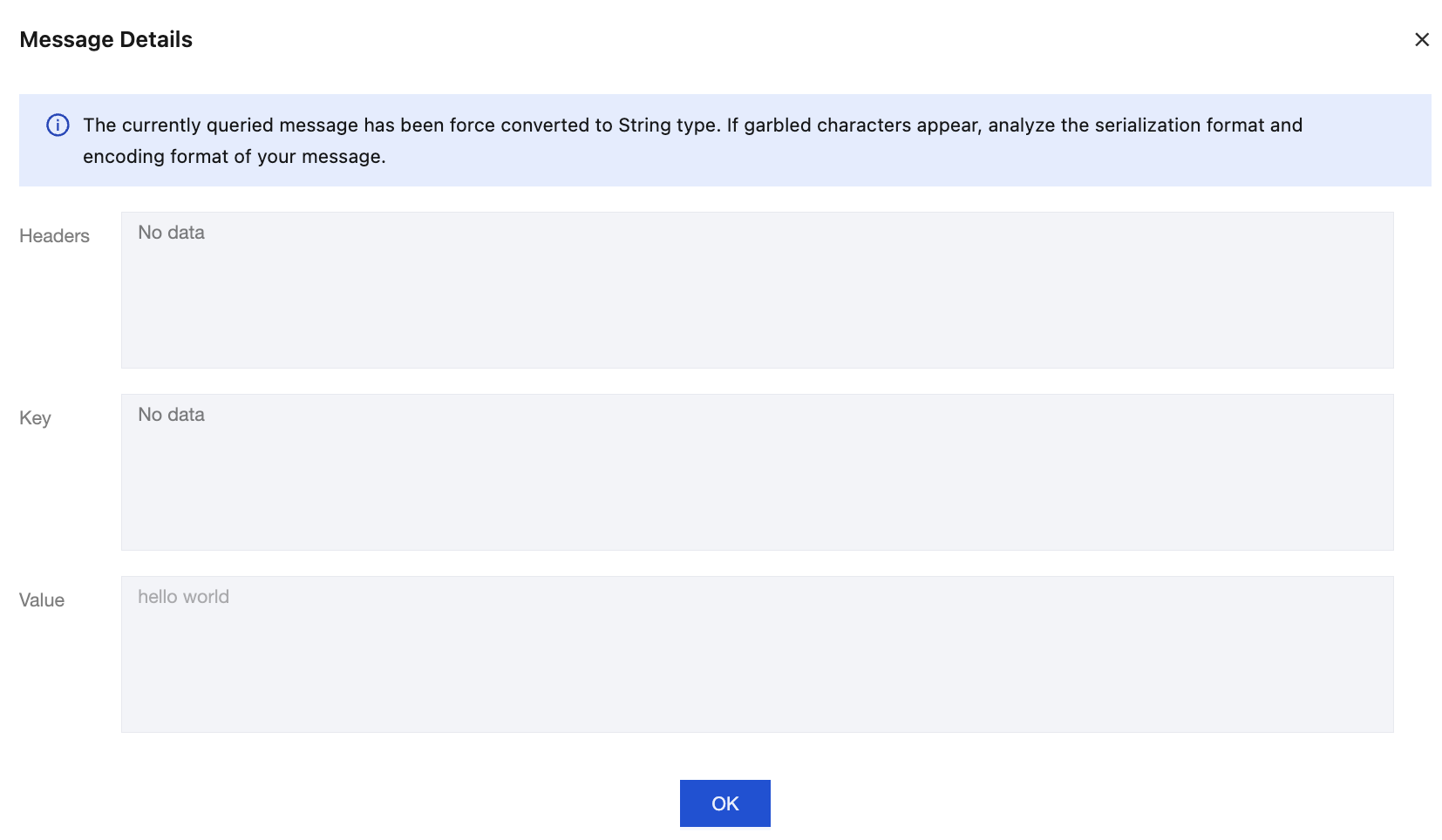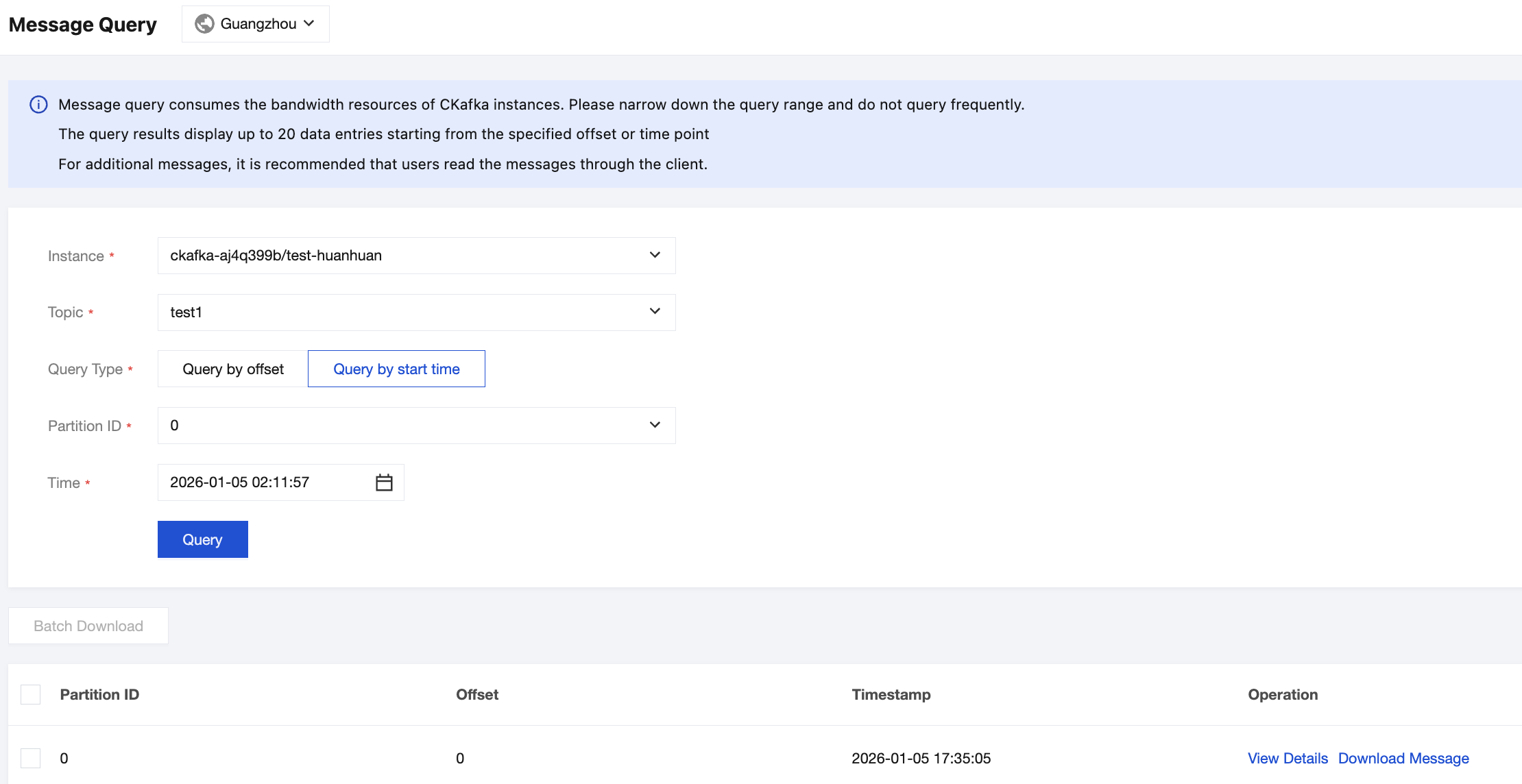 Click Download Message to download messages in the format of header, key, or value. Batch download of messages is supported.
