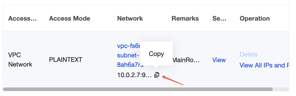 SASL_SCRAM_SHA_256 | SASL authentication is required for message sending and receiving. Passwords are stored using a hash algorithm (SHA-256) and not transmitted in plaintext. Data is transmitted in plaintext. | ✓ (Only supported by instances of versions 1.1.1, 2.4.1, and 2.8.1. For existing instances, you need to upgrade the broker minor version or submit a ticket to apply for the upgrade.) | × |