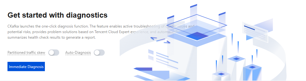 TDMQ for CKafka (CKafka) has launched the one-click diagnosis feature, which can actively troubleshoot cluster issues and potential risks. Based on the accumulated Tencent Cloud expert experience, it provides solutions for issues, automatically summarizes health check results, and generates reports. The one-click diagnosis capability extracts key information, locates issues, and provides professional solutions and suggestions for users, achieving a closed-loop Ops experience.