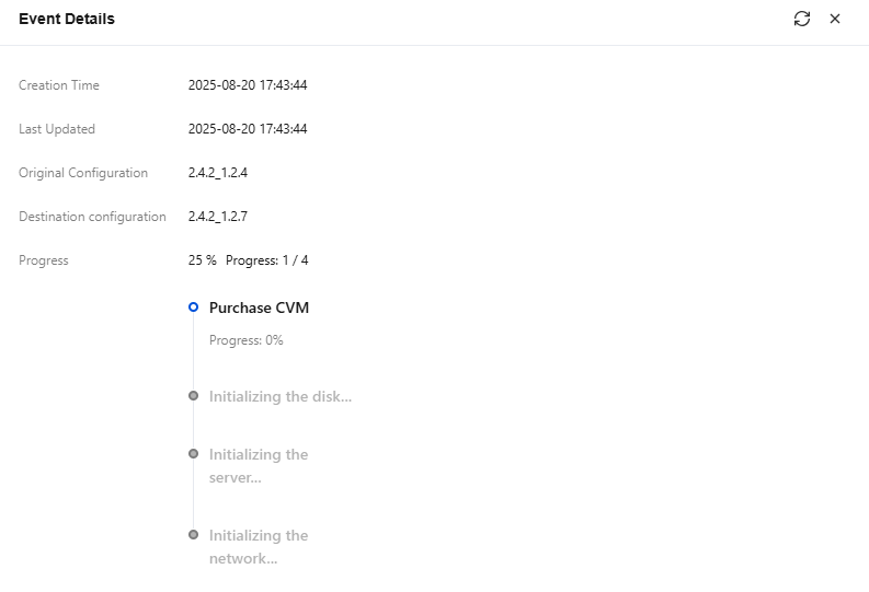6. Click View Details in the Operation column of this record to view the detailed progress of the upgrade task.