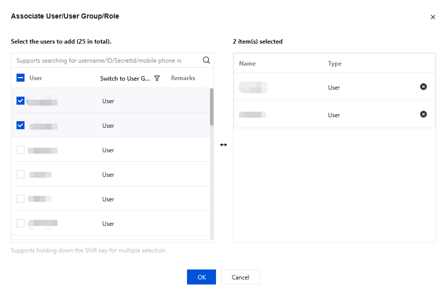 3. In the search results, click the Associated Users/Groups of QcloudCKafkaReadOnlyAccess and select the sub-account to be authorized.