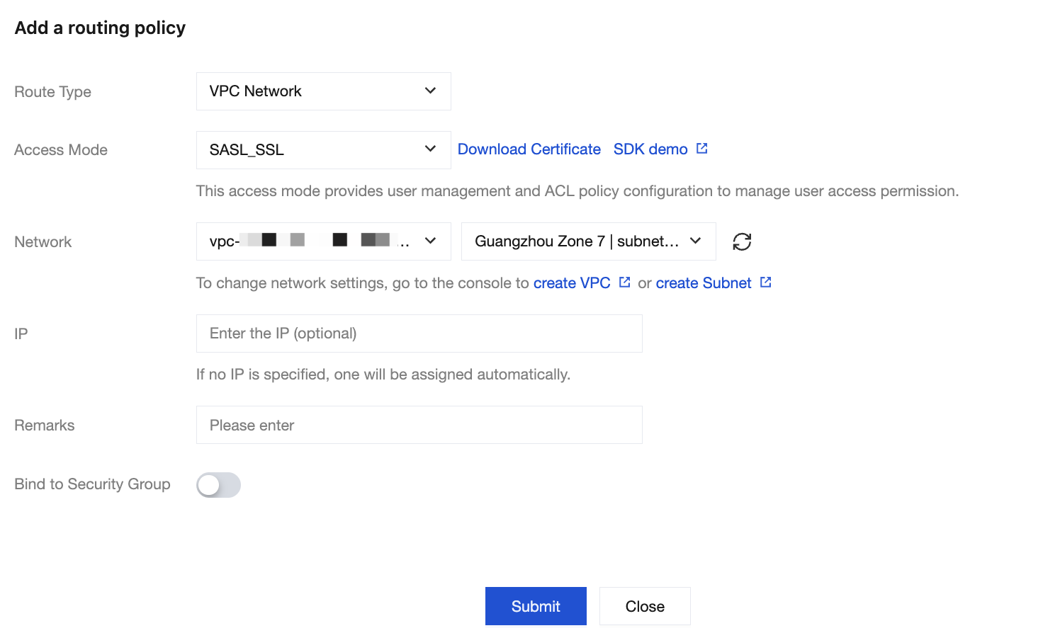 1. Only Pro Edition instances support using SASL_SSL access points and configuring custom SSL certificates.