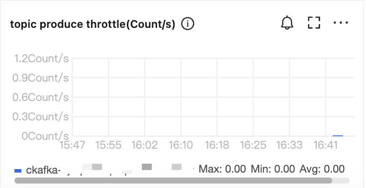 Check whether the traffic of a single topic is throttled: If a traffic throttling value is set, it restricts the message sending rate.