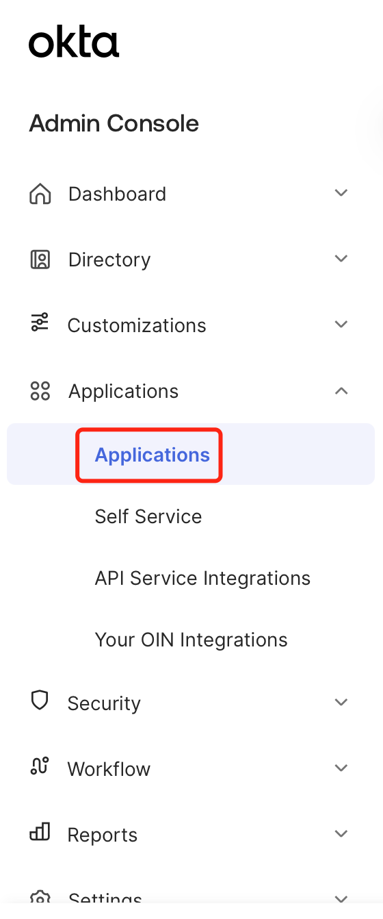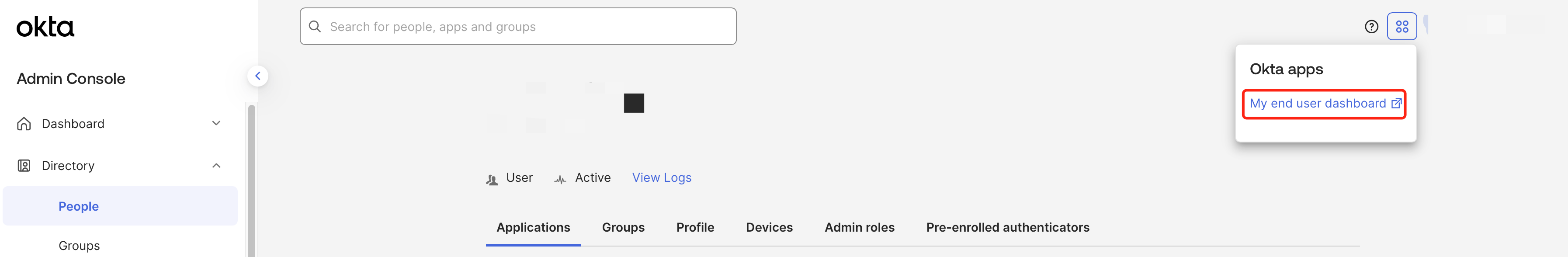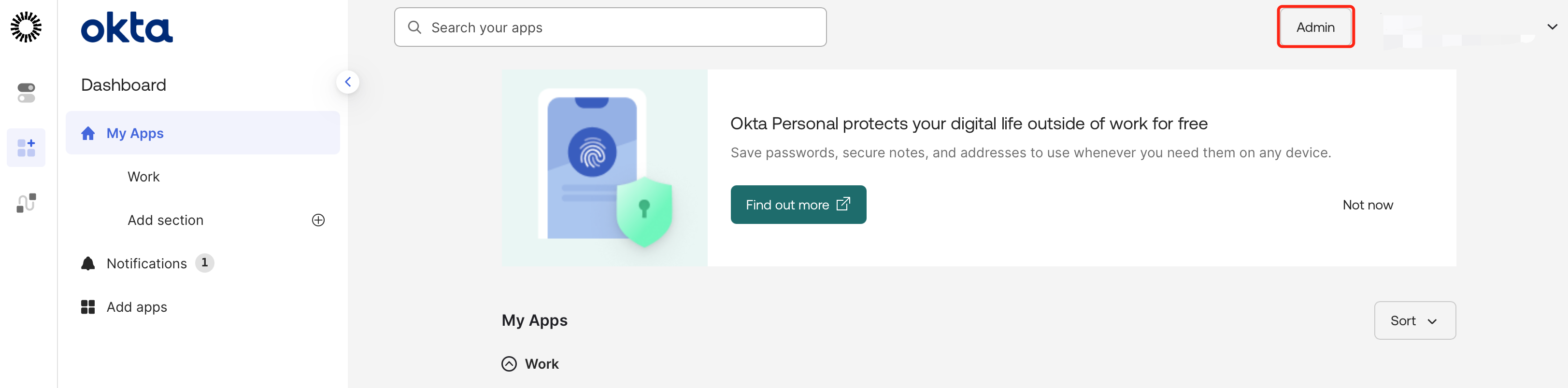 1. Log in to the Okta website, click Admin in the upper right corner of the Okta home page to enter the administrator interface