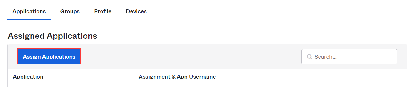 3. Click the username to enter the user details page, then click Assign Applications in the upper left corner. As shown below: