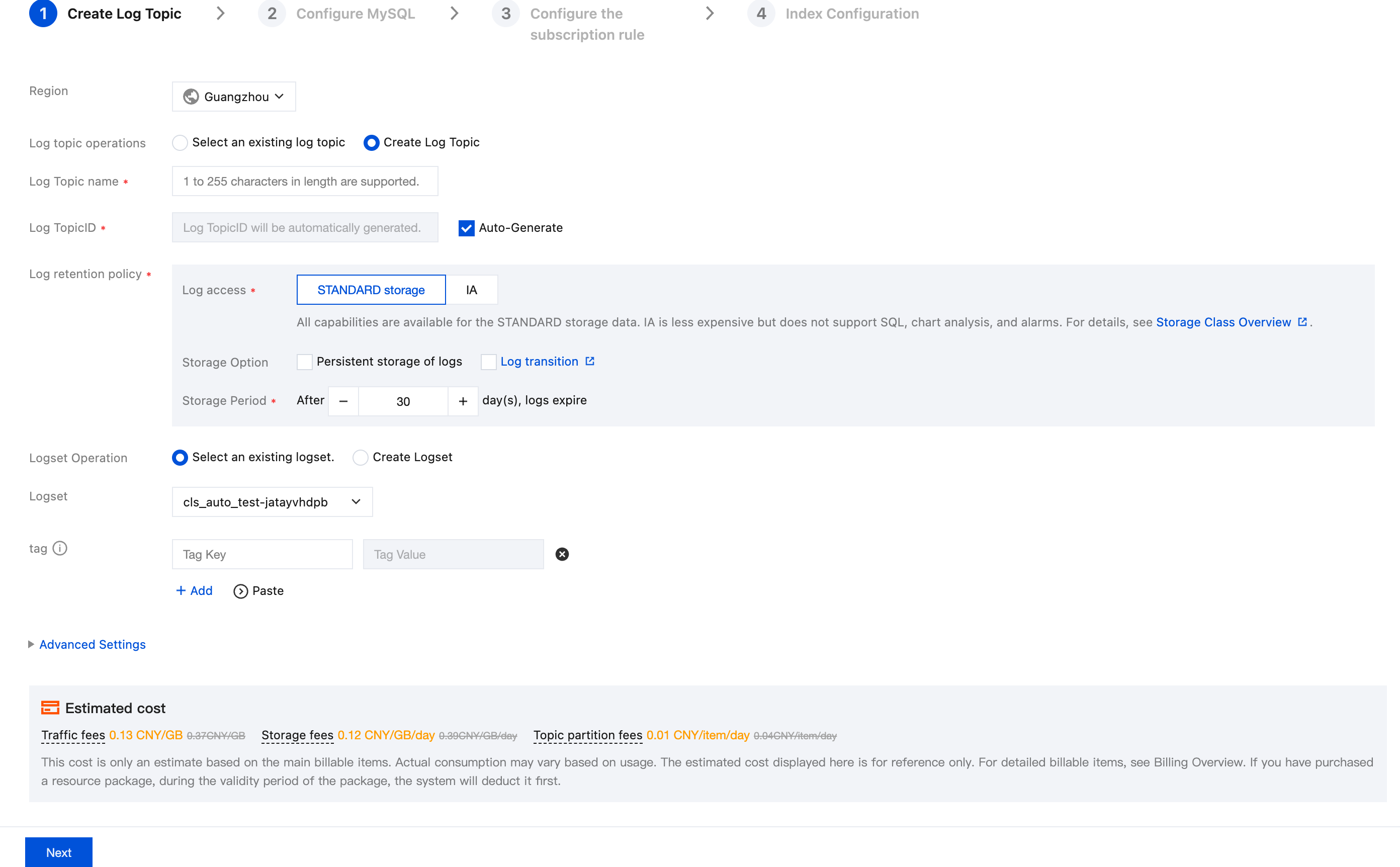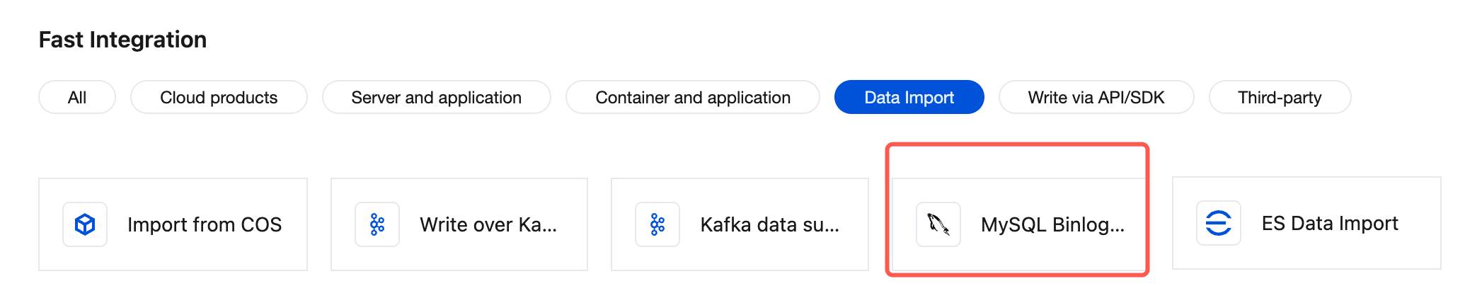 MySQL Instance | Yes | If the MySQL type is TencentDB for MySQL or TDSQL-C for MySQL, you can select the target TencentDB for MySQL instance from the drop-down options. Note: Currently, you can only select a TencentDB for MySQL instance in the same region as the log topic. To subscribe to binlogs from a MySQL instance in a different region, set MySQL Type to Self-built MySQL and subscribe to binlogs through the public network. |